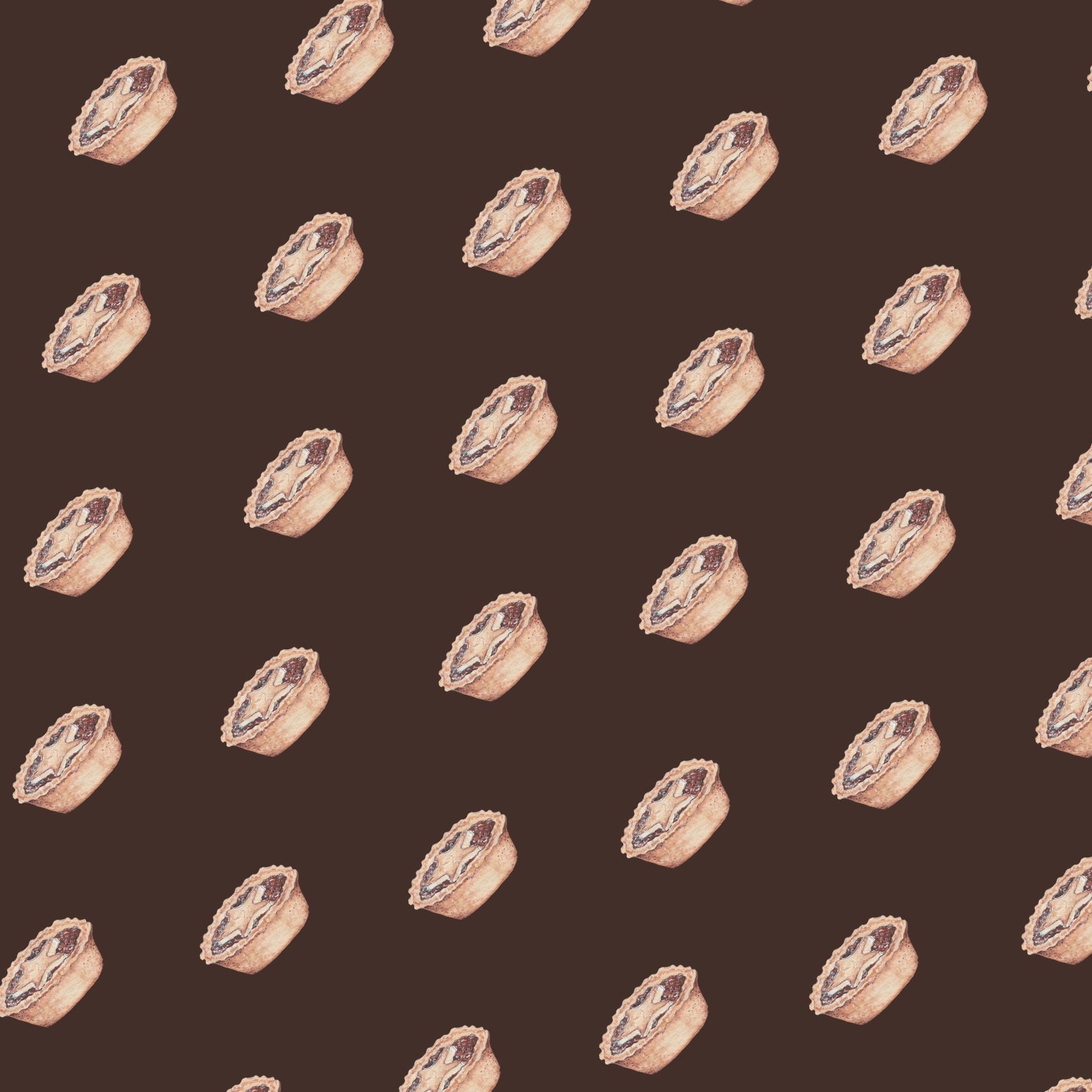 Colours: Colours on screen may look different from real life. The background is warm brown. The mince pies are beige and brown with some white highlights.